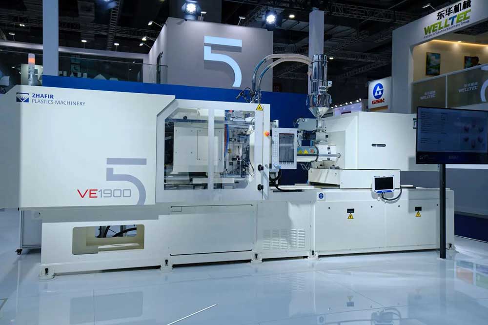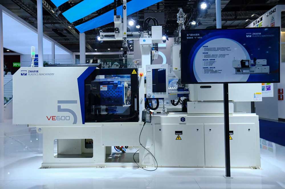 其中,海天国际全新五代机产品——VE600V-80h、VE1900V-430h、JU5500V/3450、MA2100F/580悉数亮相,分别聚焦光学、医疗、汽车及包装领域,呈现了高效、节能、灵智的专业解决方案,为现代塑料加工的智能生产流程注入了全新活力,是海天国际新质生产力的生动展示,在现场引起了巨大反响。